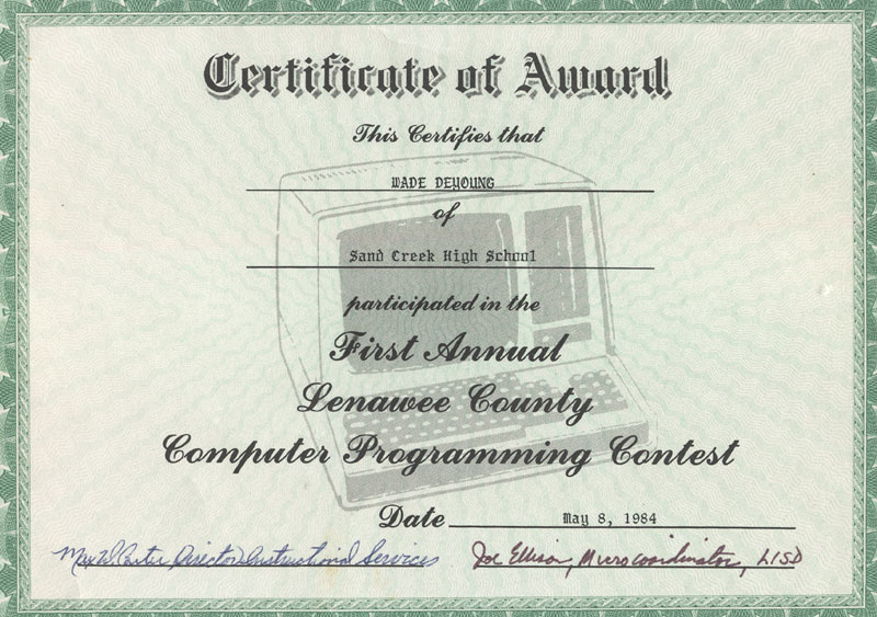 - Won first place computer programming competition