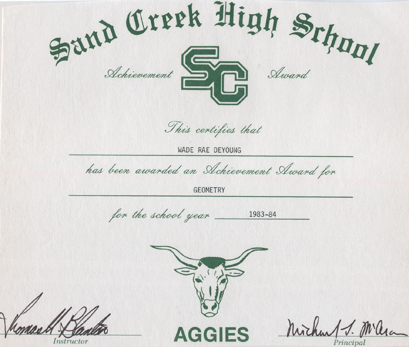 - Entered Tenth Grade at Sand Creek High School