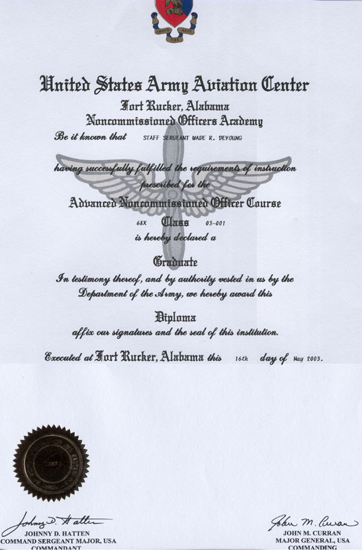 - Attended Advanced Non-Commissioned Officer Course (ANCOC) at Ft Rucker, AL