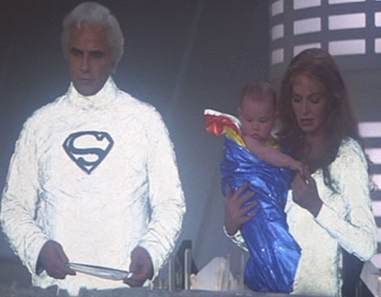 (Purportedly, the idea for Jor-El to wear Superman’s famous logo came from Brando himself!)  The film hints that young Clark Kent lacks the
