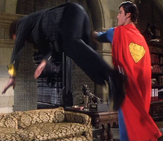in the second film, push all three of his Kryptonian opponents’ white rays back at them.  In addition in the second film, Superman and the Phantom