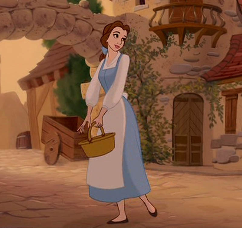 Just as Aurora, so Belle is shown in her “peasant” clothes for the majority of her screen time in