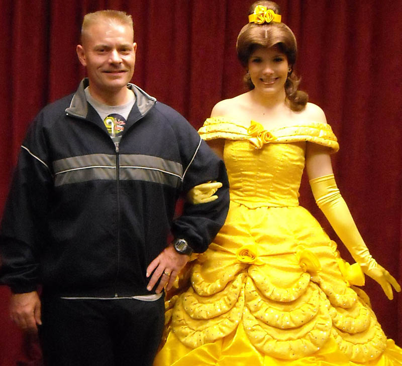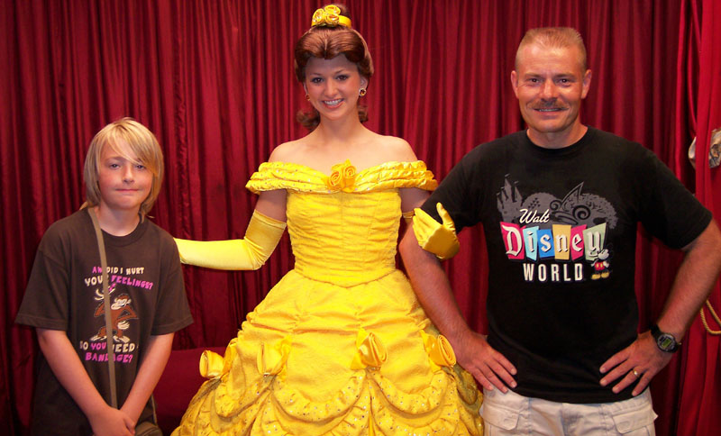 Beauty & the Beast. However, the costume people at the theme parks have chosen for Belle to make most of her appearances in her common apparel, despite the fact that the opposite convention is employed in the cases of Princess Aurora & Cinderella. Belle does ma