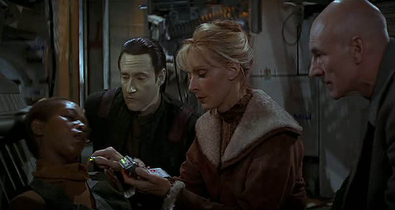 Star Trek: First Contact occasions yet another uniform swap for the TNG cast—this time into the gray & black uniforms worn by the DS9