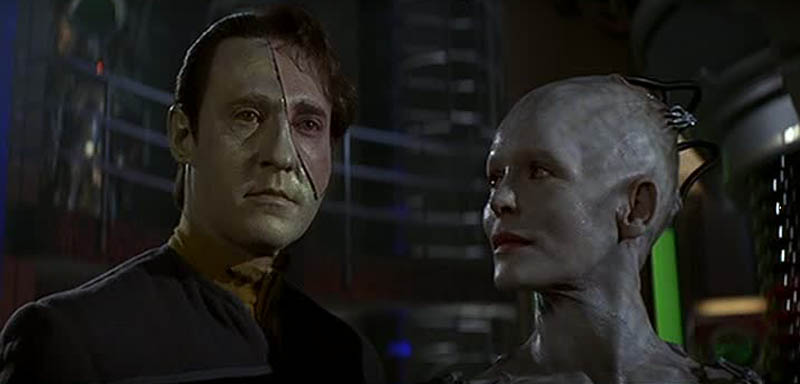 The plot is reminiscent of The Terminator. The Borg Queen’s skeletal remains even resemble the Terminator’s after he loses his skin.