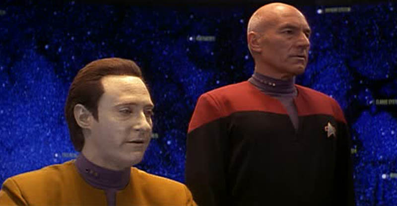Star Trek: First Contact occasions yet another uniform swap for the TNG cast—this time into the gray & black uniforms worn by the DS9